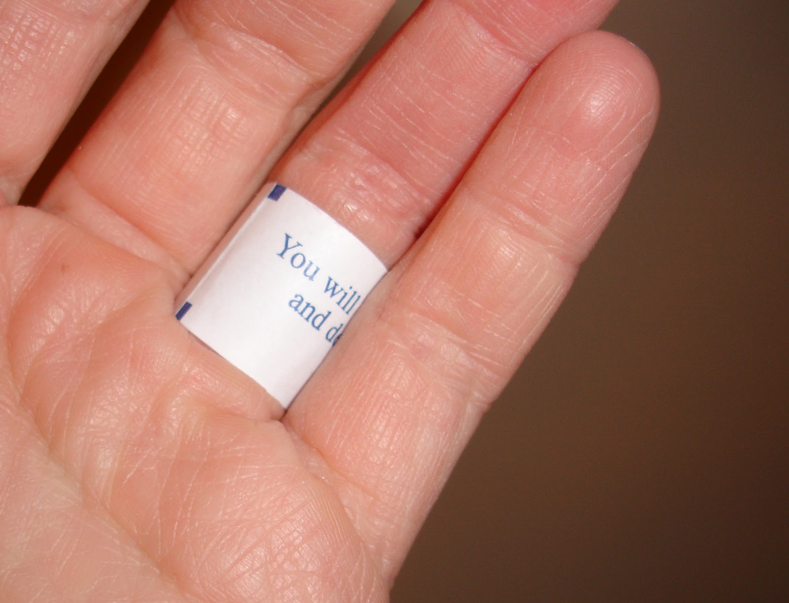 Today was a super busy and crazy day! I did not have a chance to make a ring during the day, so I planned to make one tonight after I got home. I went to a wonderful Japanese steak house with Brett and friends. It was delightful! When dessert came, it was a pineapple sherbert with real bits of pineapple in it! Also, a fortune cookie! I opened mine and was super dissappointed at the fortune and the learn chinese word of "salt".... I looked on the back to see the "lucky numbers" and still not mine. I have never gotten a fortune with my lucky number on it! and it is such an easy simple number! The number "5"..... well I shouldn't say "lucky", but more a "favorite number". 5 is my FAVORITE number!..... Anywho, there were two other guys that were at our table that left before dessert (they weren't with our party) and so their desserts were unclaimed. When one of the desserts was offered, I accepted a new fortune cookie in place of my terrible one..... What was inside was exciting and perfect! Here is what it said: "You will become more passionate and determined about your convictions". On the back, the learn chinese word was the one for "Good Luck"!... and lo and behold, the lucky numbers were.... 55, 5, 45, 28, 13, and 4! Sweet! For the first time ever I got a 5! I knew this was tonight's ring! So here it is!